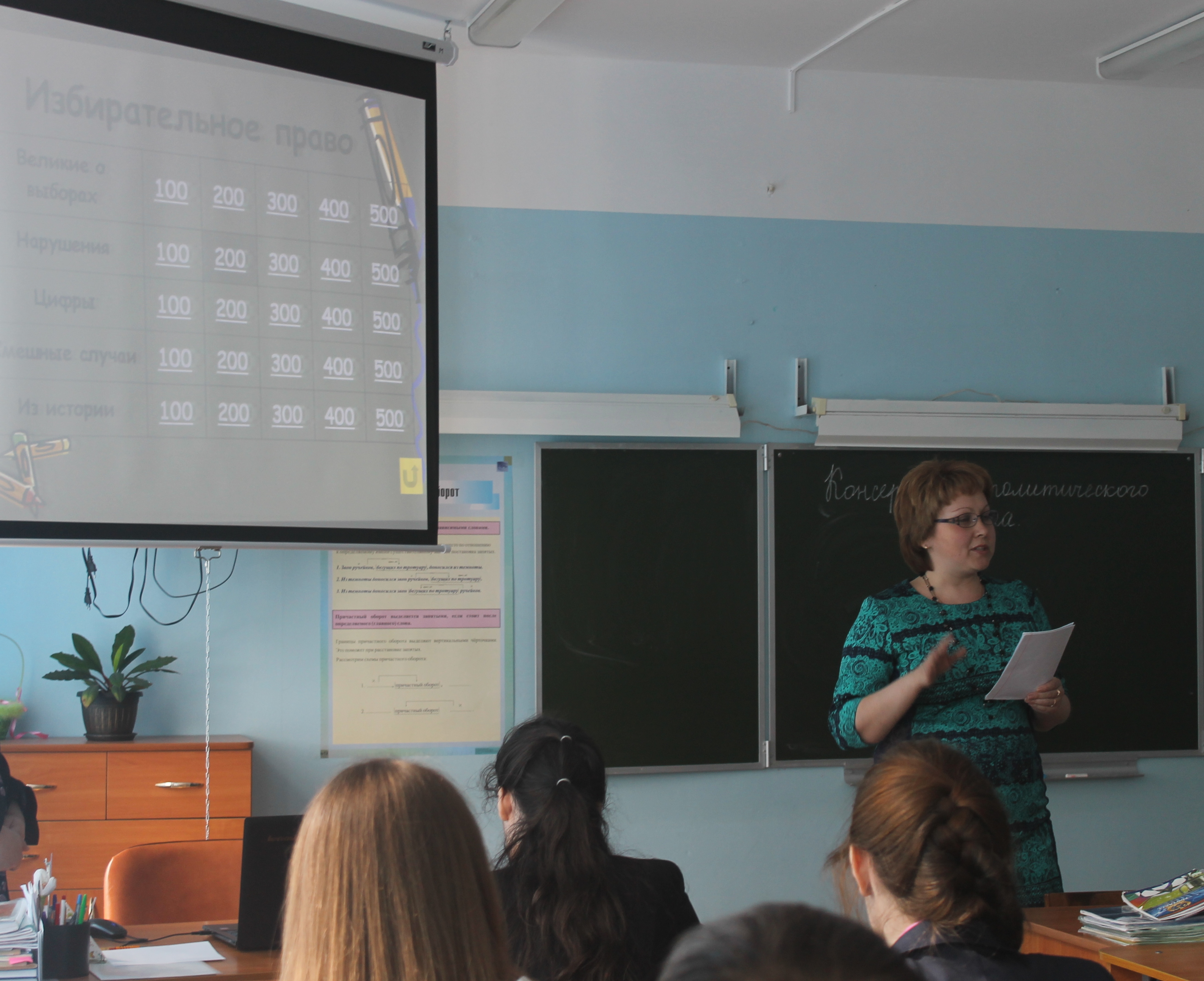 15.04.2016 в МКОУ «Ушакинская СОШ №1» г. для обучающихся 10-11 классов было организовано мероприятие, посвященное Дню молодого избирателя, направленное на развитие и повышение правовой культуры молодых и будущих избирателей. В ходе мероприятия обучающимся была представлена презентация «Выборы – ответственность за будущее», в ходе которой ребята еще раз повторили основы избирательного процесса. Перед учениками выступили заместитель председателя Территориальной избирательной комиссии Тосненского района Чеснокова О. Н. и председатель участковой избирательной комиссии избирательного участка №884 Ивашкова Н. Л.. Во второй части ребятам представилась возможность принять участие в интеллектуальной игре «Своя игра» – избирательный процесс. В игре приняли участие соответственно две команды: обучающиеся 10 и 11 классов. Чеснокова О. Н. и Ивашкова Н. Л. оценили ответы обучающихся в раундах в соответствии с правилами игры и подвели итоги участия в игре.