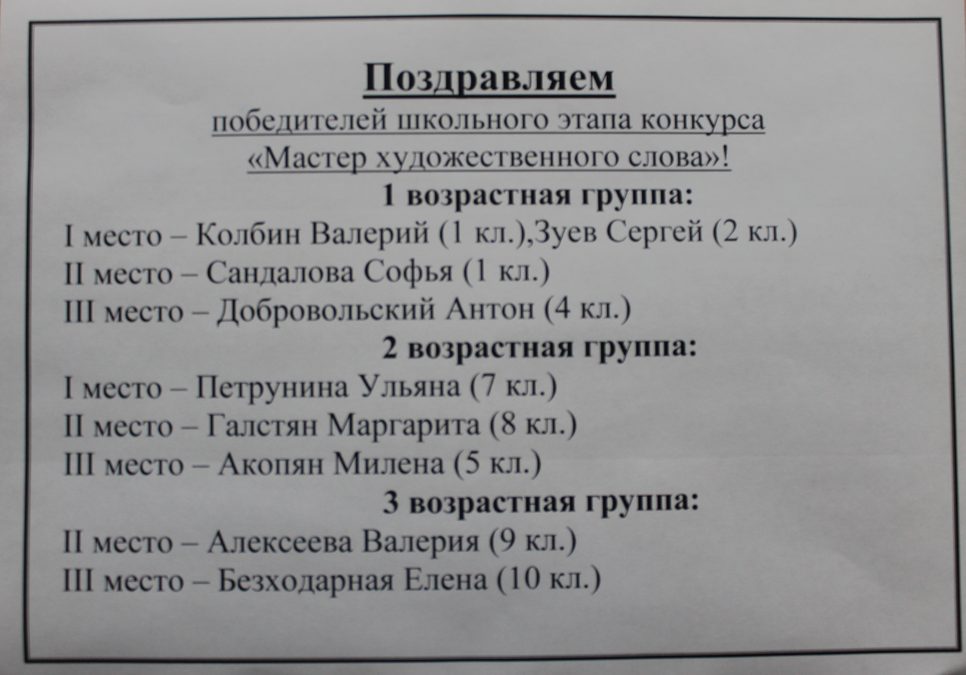 Победители конкурса: