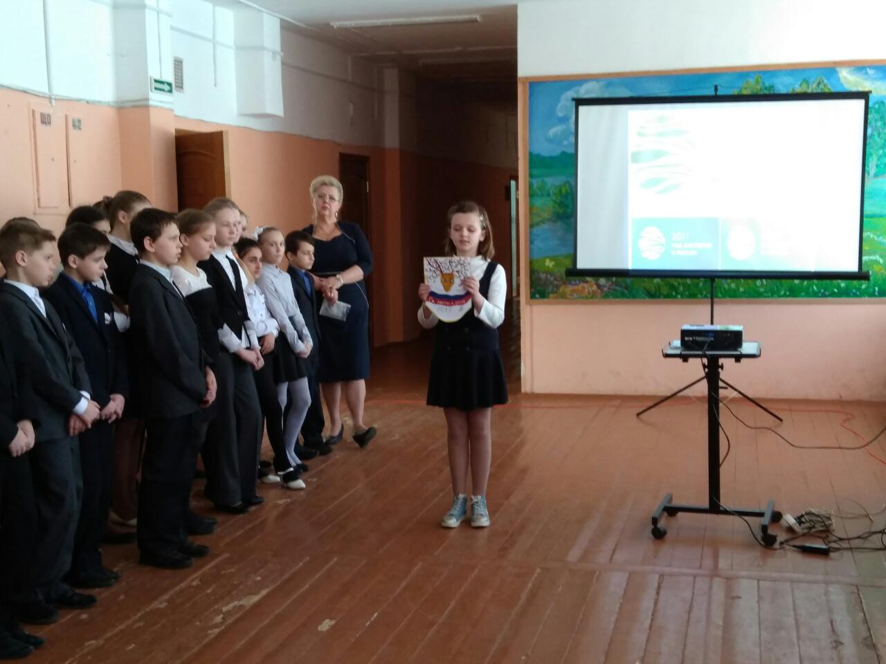 В результате победу одержал 6 класс. Автором эмблемы «Год экологии – 2017» в школе является Русаков Дмитрий.