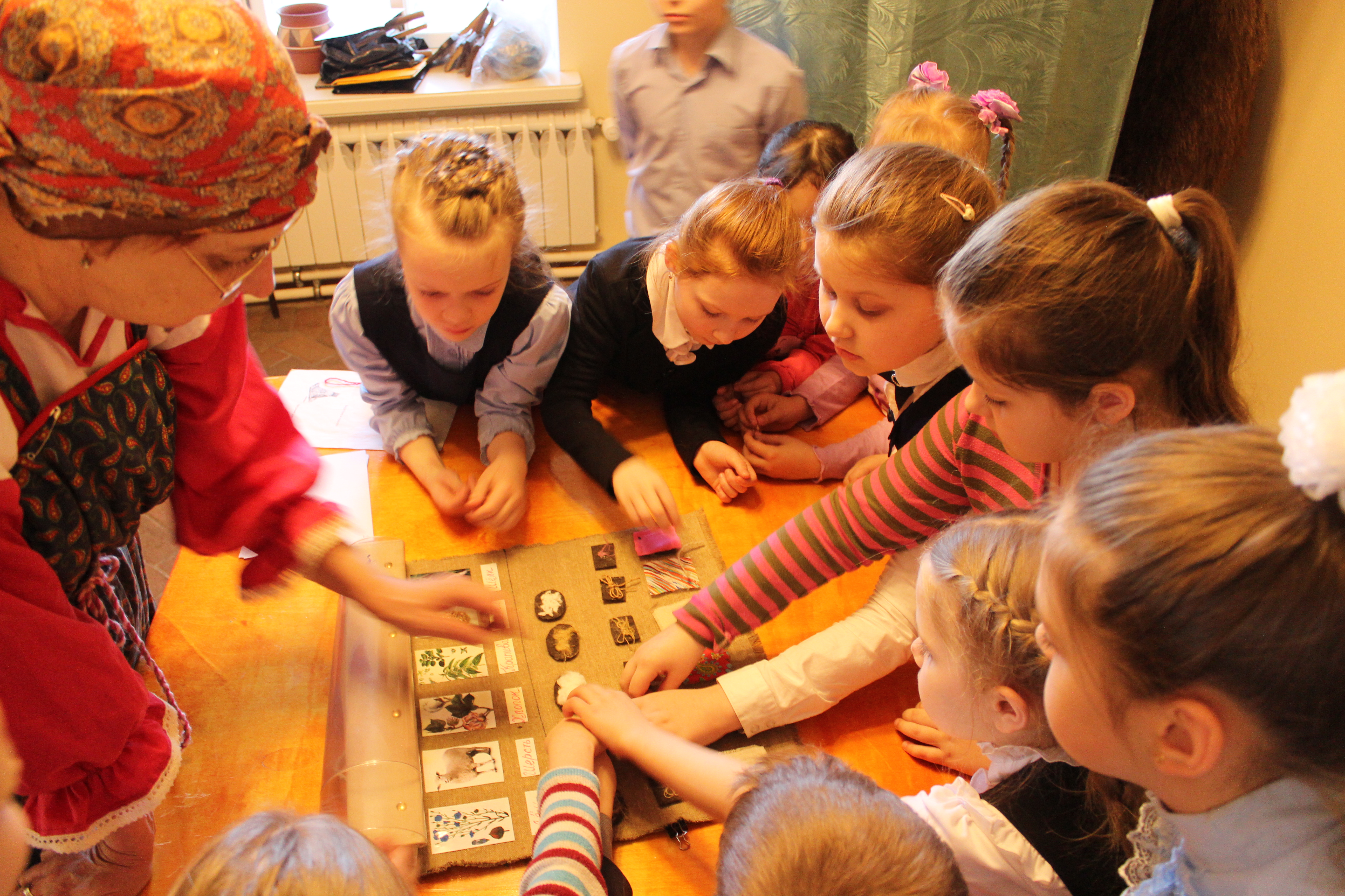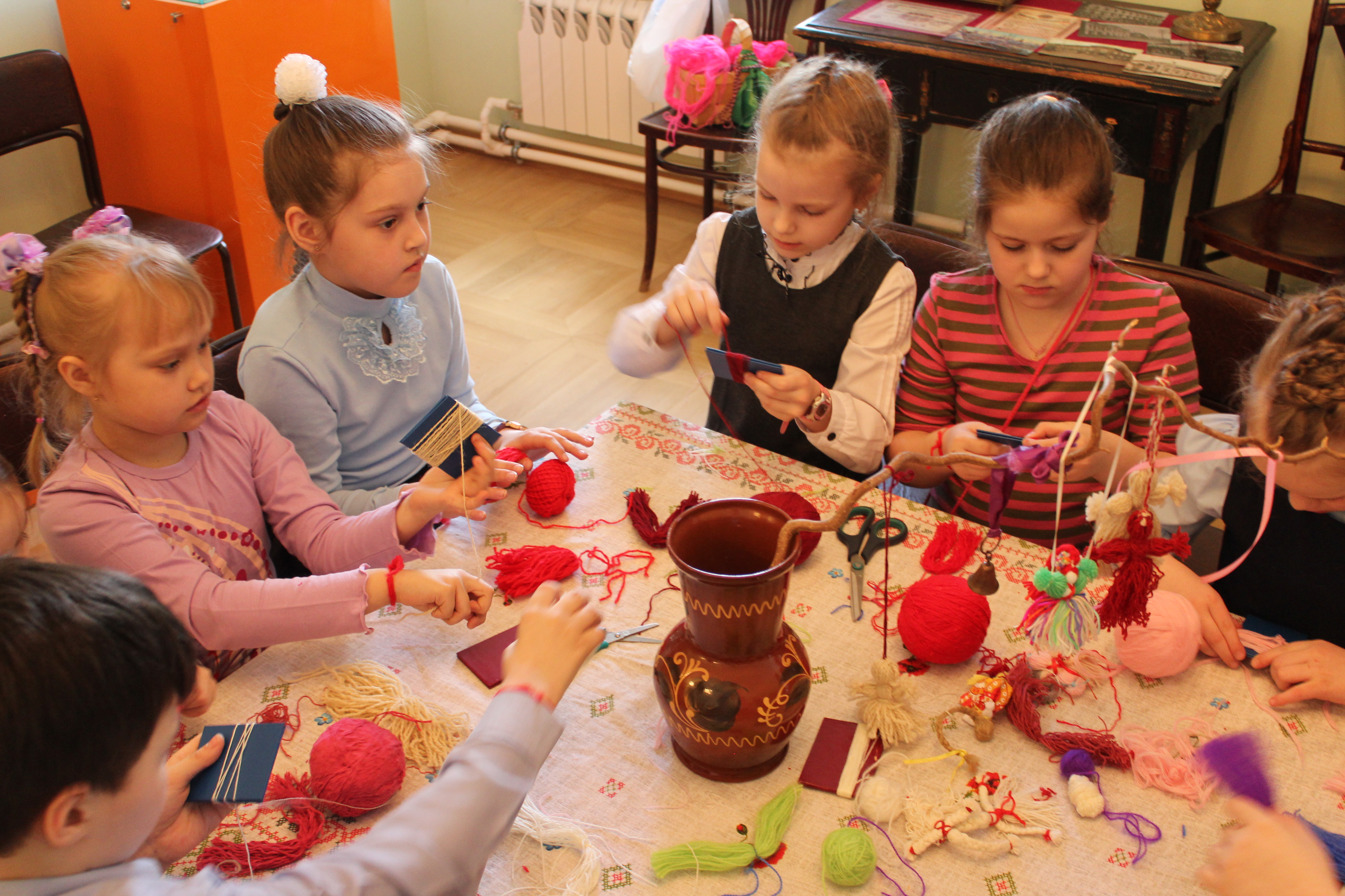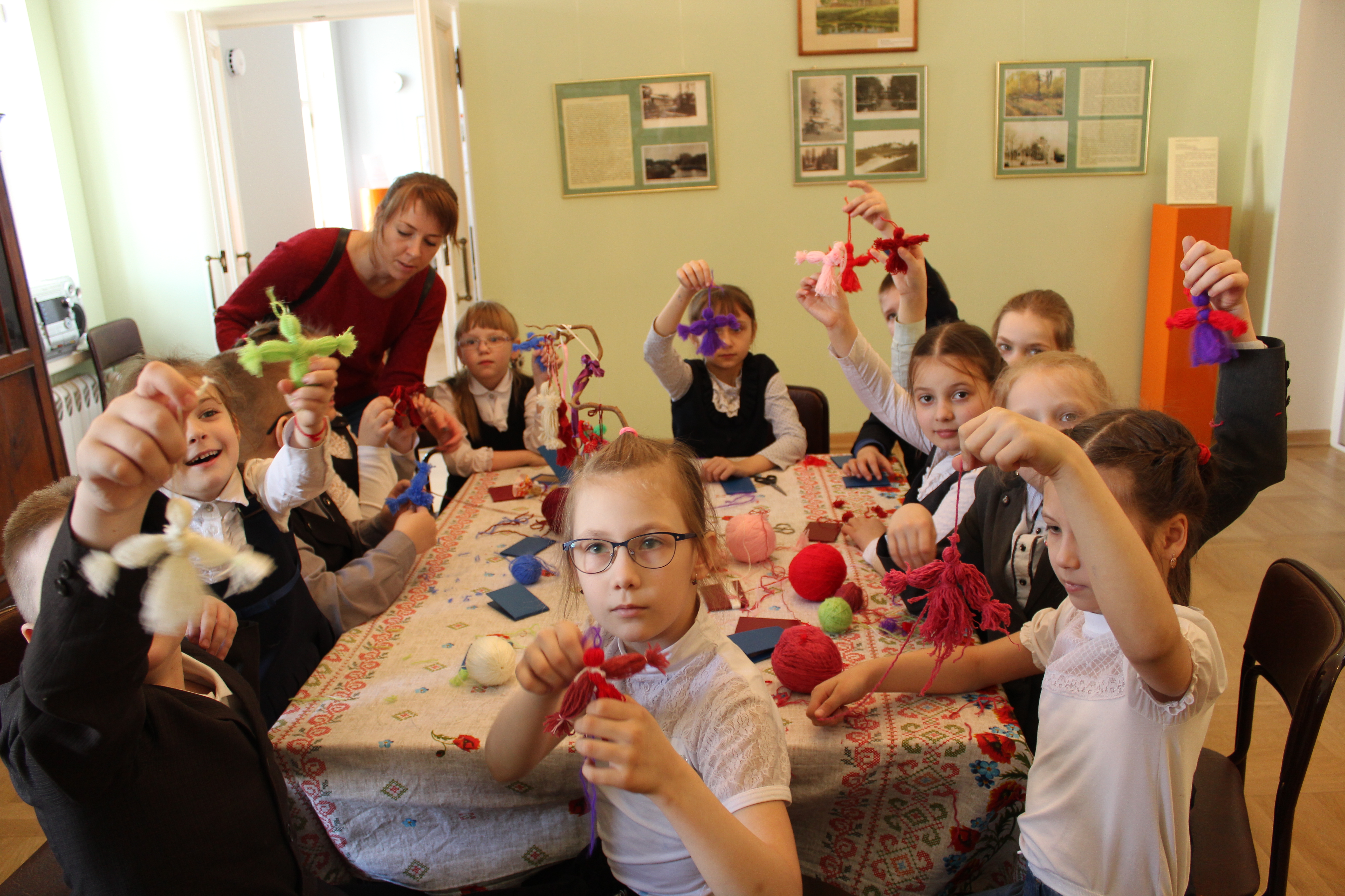 «Из чего сделана нитка?». Ученики научились готовить пряжу (кудель) к прядению, познакомились с основами прядения нити на веретене и самопрялке, сделали нитяную куклу – «мартиничку», которая стала символом «закликания весны». Ребятам был выдан сертификат участников интерактивной экскурсии.