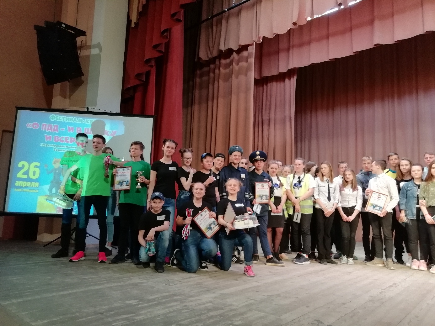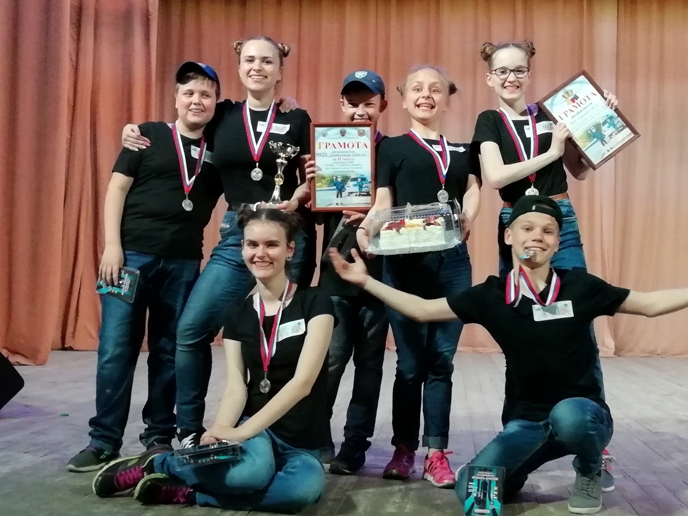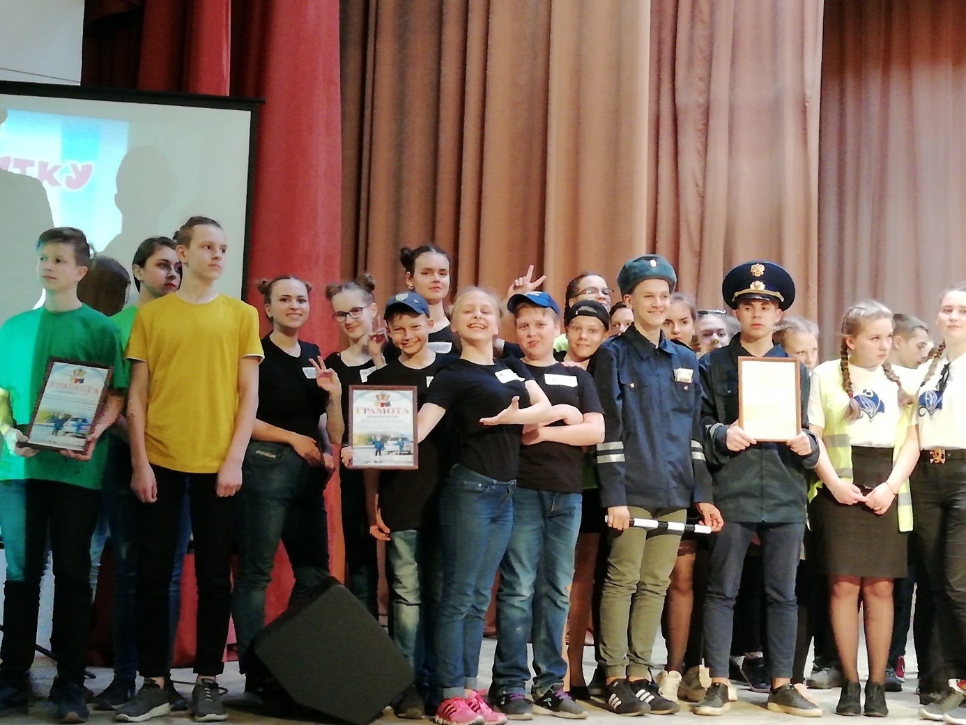 (в составе - Никулица Антонина (капитан команды), Алексеева Валерия (11 класс), Бондаренко Евгений, Николаева Мария (7 класс), Андрющенко Алёна, Другаков Максим, Никулица Иван ( 5 класс), завоевавшую сегодня 2-е место в фестивале КВН "О ПДД- и в шутку и всерьез»!!!